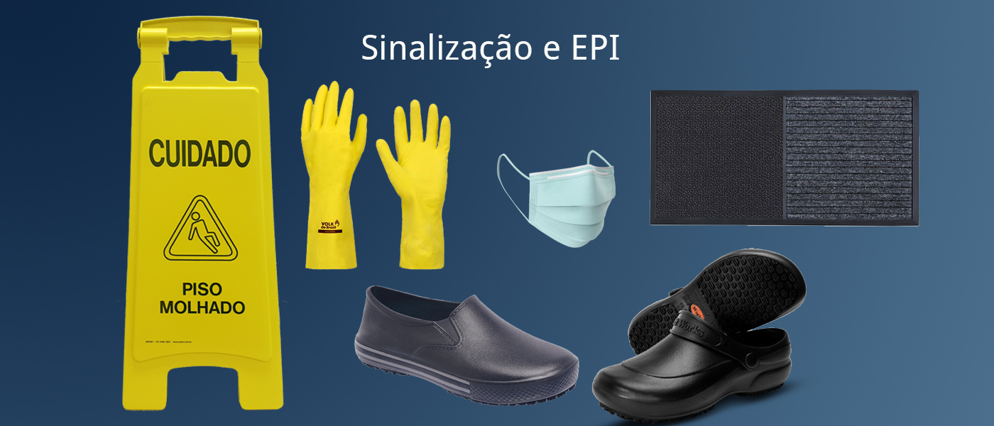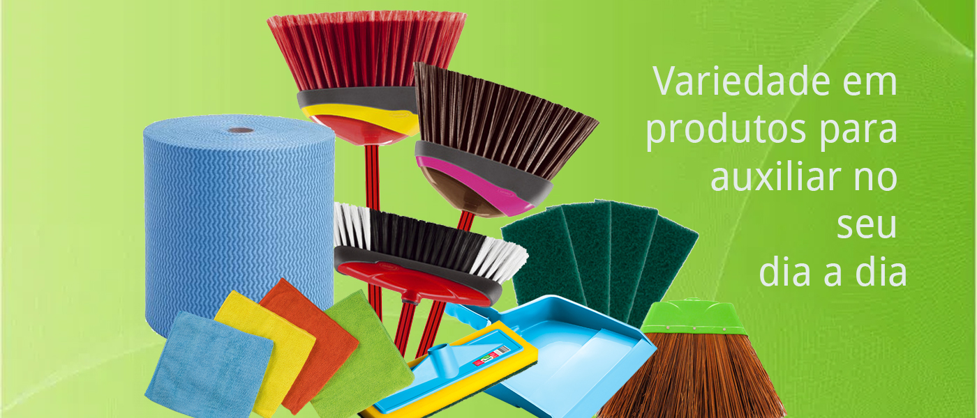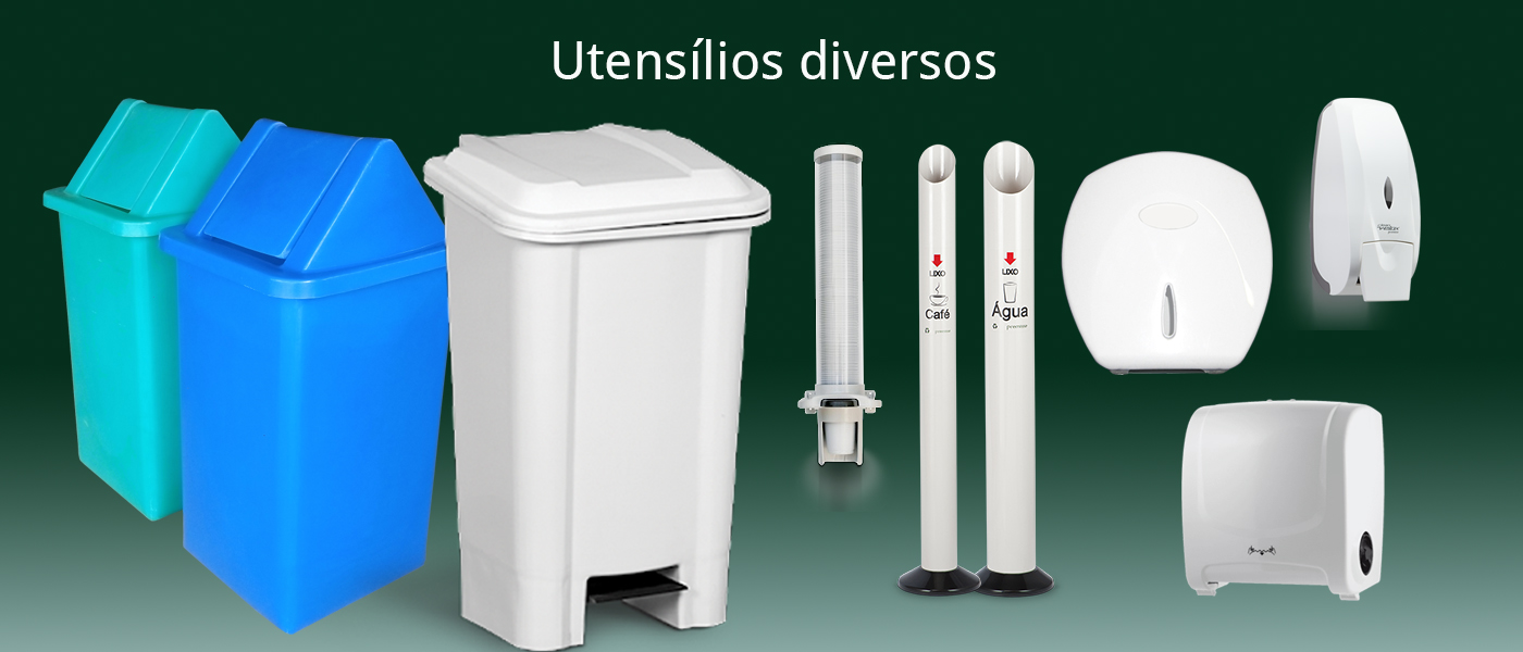baldes, lixeiras, suportes, rodos e vassouras, dentre outros